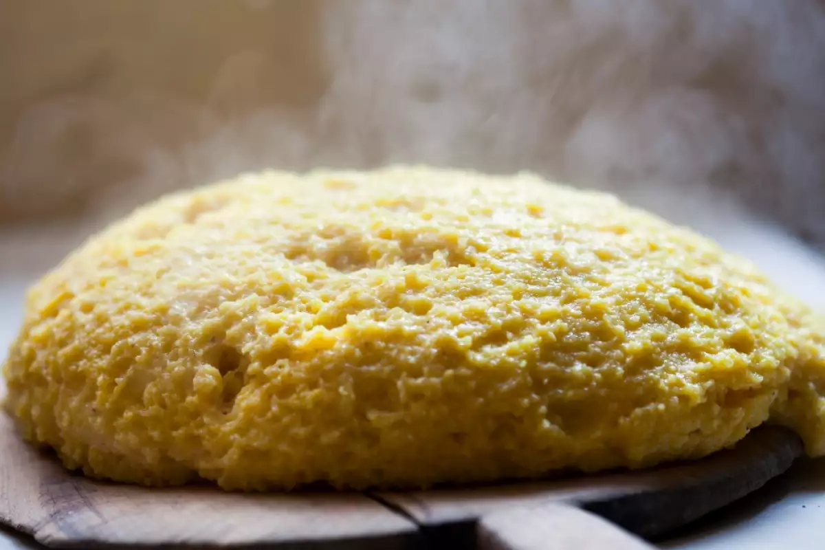 Водата се кипва със солта в голяма тенджера. Постепенно и се добавя малки количества царевично брашно, като непрекъснато се бърка около 45-50 мин.
