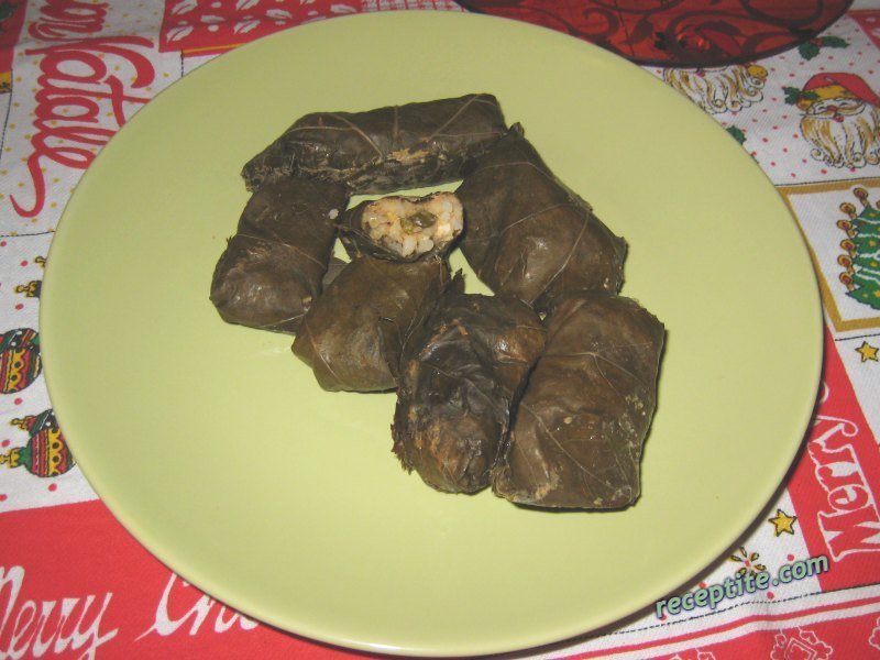 Лукът се нарязва и запържва и в олиото. Прибавят се ориза, булгура и червения пипер и те се пържат до прозрачност на ориза. Залива се с 400 мл вода и се остава да се задуе ориза и булгура. Прибавя се джоджена и яйцето. Като поизстине сместа се настъргва вътре и сиренето и се обърква добре. Завиват се сармии, които се нареждат в намазнена тава и се заливат с още 400 мл вода. Пекат се до готовност в загрята до 180 С фурна. Сол не се слага защото сиренето е солено.